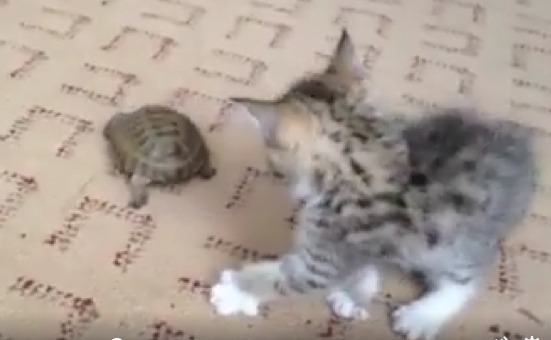 Μια μικρή γάτα και μια χελώνα συναντούν η μία την άλλη. Η γάτα δεν παλεύεται! Πολύ γέλιο!